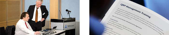 Der Erfolg einer Management-Methode stellt sich erst in ihrer Umsetzung innerhalb des Unternehmems heraus. Damit dieser Erfolg garantiert ist, begleitet Sie ein QRP-Coach in der erstmaligen Praxisanwendung. Ob bei der schnellen Beantwortung von Fragen oder der Adaption der Methode an die individuellen Gegebenheiten Ihres Unternehmens: Im Rahmen eines Coachings wird auf allen Ebenen eine nachhaltige Umsetzung garantiert.